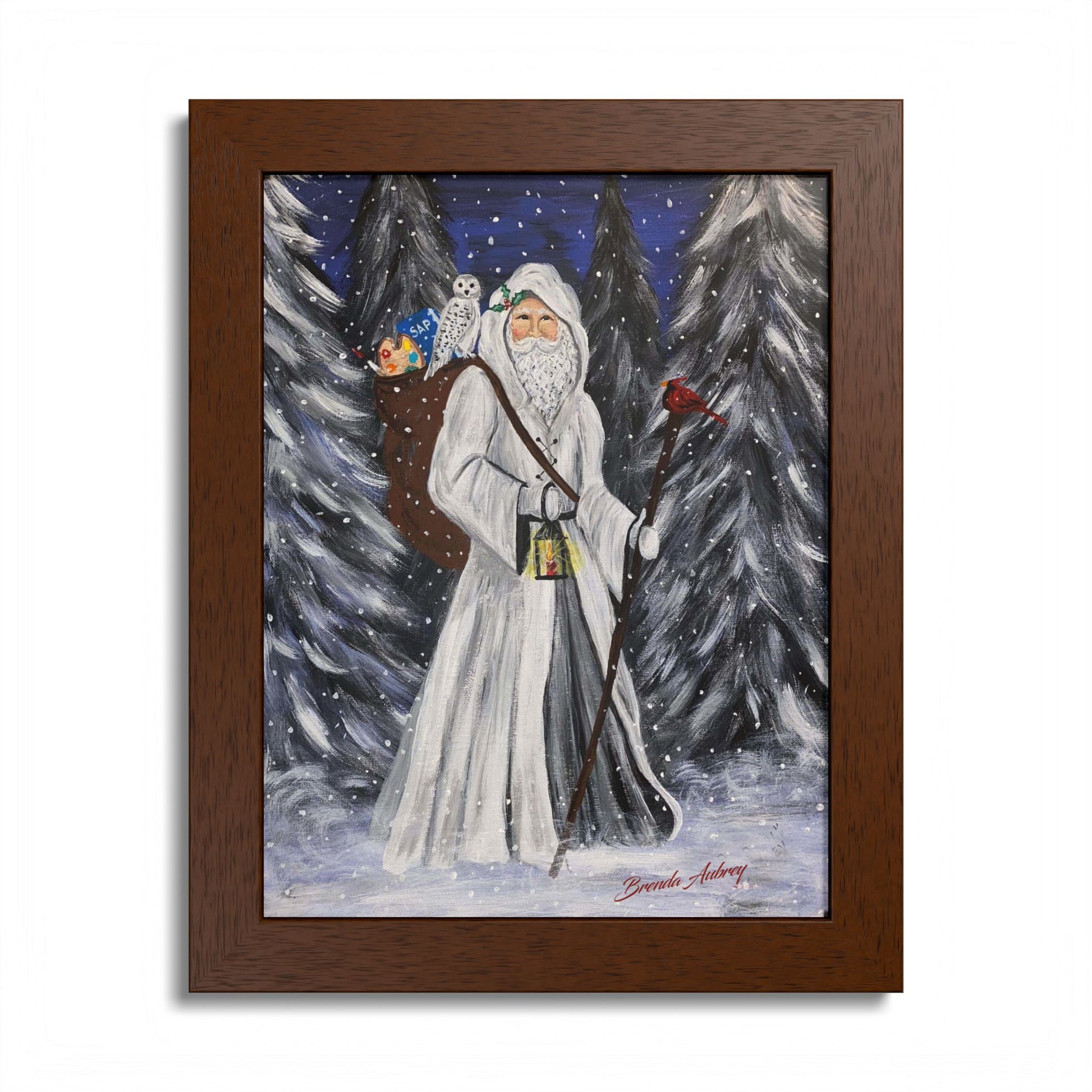 2021 WHITE SANTA WITH CARDINAL (Framed Print)